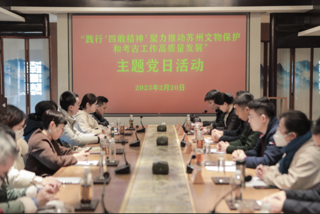 2月20日下午,苏州市文广旅局机关第四支部、市考古研究所党支部、文物保护管理所党支部、文物鉴定中心党支部,联合开展“敢为、敢闯、敢干、敢首创”主题党日,以“敢为、敢闯、敢干、敢首创”精神激发担当作为,推动苏州文物保护和考古事业高质量发展。局党组成员、副局长花友祥参加主题党日。