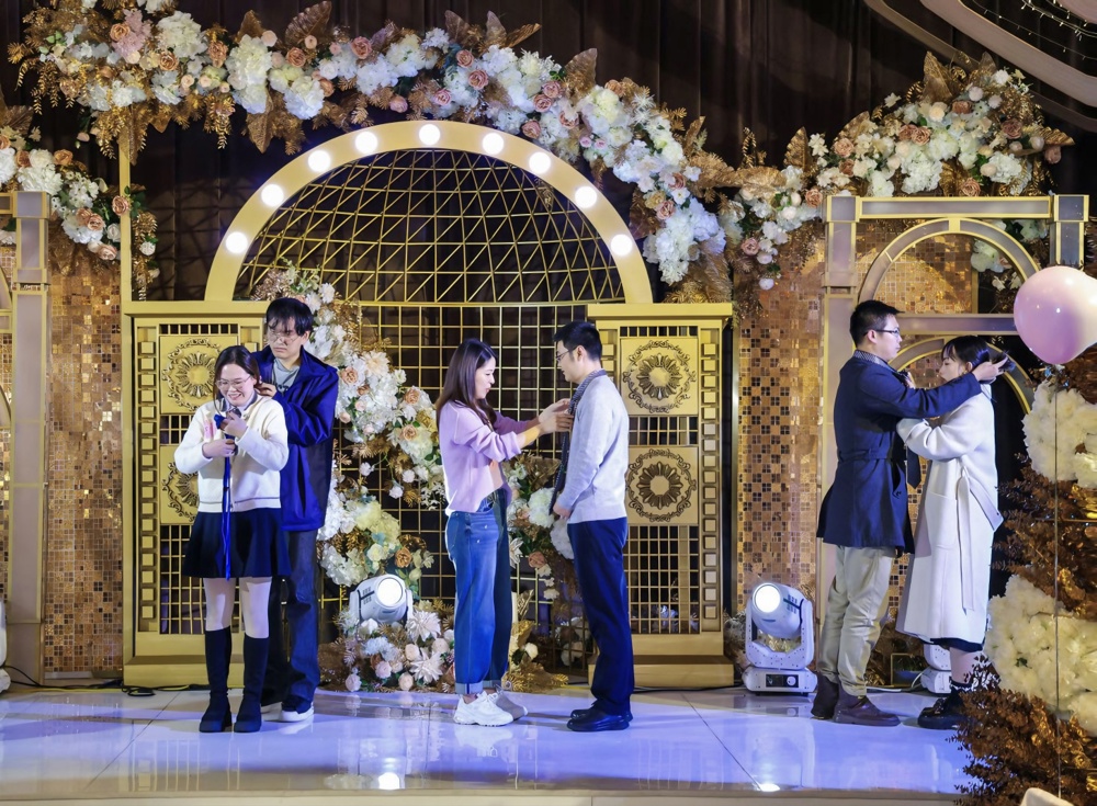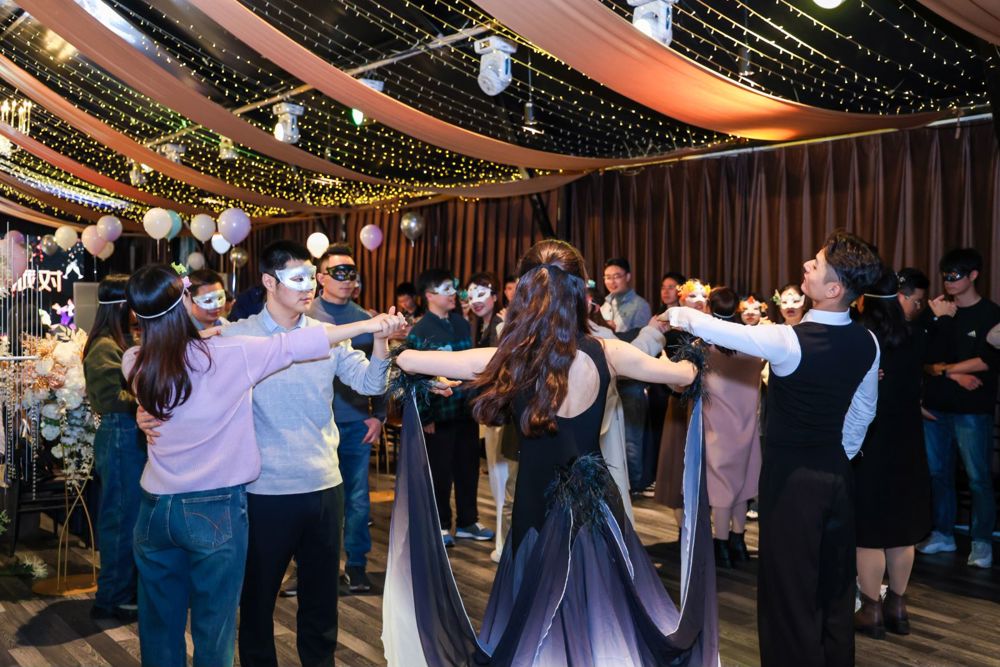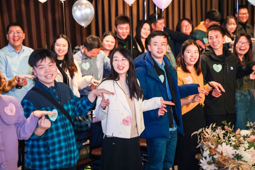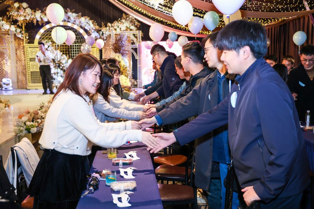 现场伴随着主持人的热闹开场,联谊活动拉开序幕。青年们通过新颖有趣的“破冰游戏”拉进距离,消除初次相识的陌生感。随后,男女嘉宾在“假面派对”环节中默契创作DIY面具,伴随轻柔舒缓的音乐愉快共舞,开启一场浪漫的蒙面邂逅。接下来的“转角遇到爱”“为爱告白之双向奔赴”更是将现场气氛推向高潮,男女嘉宾在轻松惬意的氛围中打开心扉、畅所欲言,向心仪的“TA”勇敢追爱、甜蜜告白,24位青年从“台上联谊”延伸为“台下联络”,并现场获赠“幸福牵手礼”。
