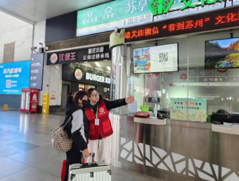 元旦假期,苏州市文广旅局统筹组织,在苏州图书馆、苏州博物馆、苏州市公共文化中心、旅游咨询中心火车站站点、中国昆曲博物馆等36处文旅场馆与枢纽节点设立志愿服务岗。党员志愿者们以“主客共享”的理念,不仅提供引导咨询、秩序维护等基础服务,更将文化传播、旅游推介、便民惠民融入服务细节。