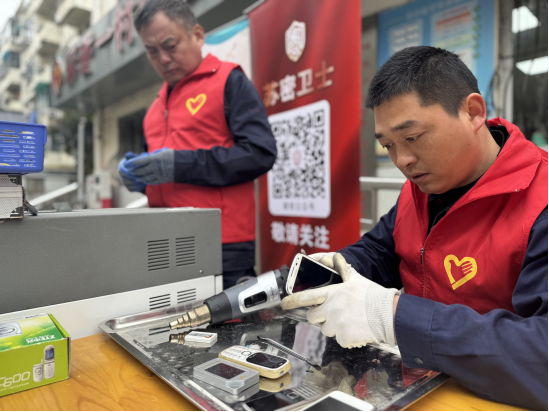 “家里旧手机扔了怕泄露个人隐私、放着占地方,这个活动解了我的难题!”居民说道。为解决居民闲置电子产品处置难的痛点,现场设置销毁专区,工作人员携带专业设备,提供免费、安全、规范的销毁服务。