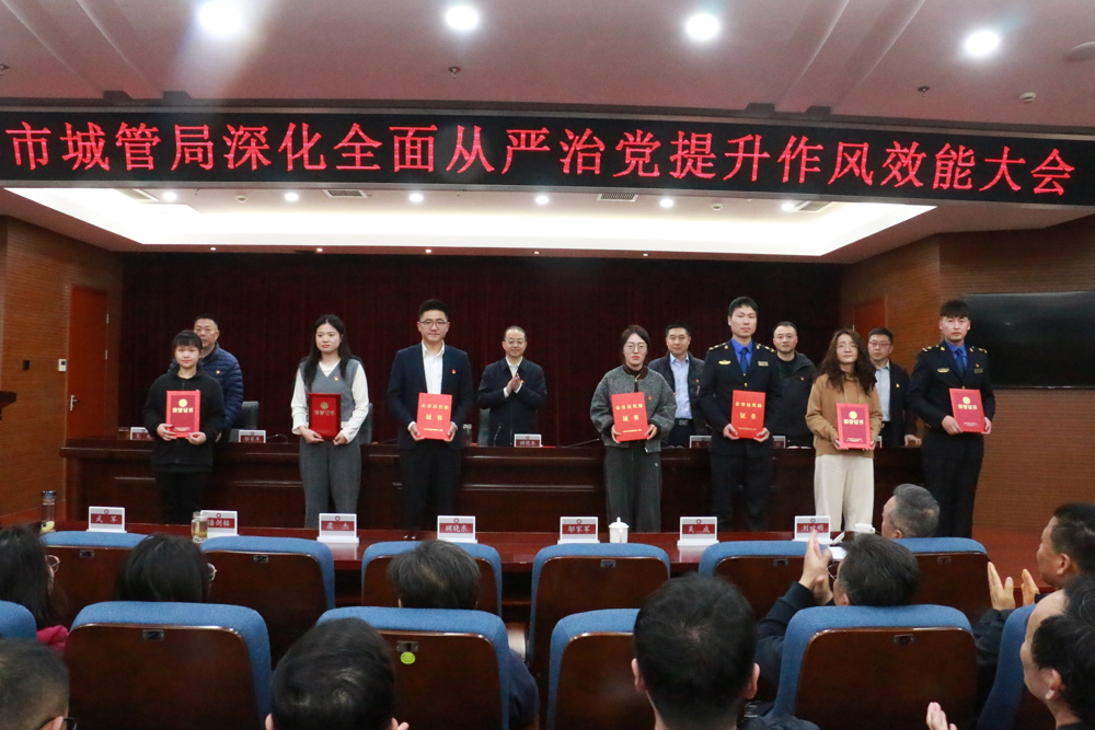 会上,集中观看了警示教育片《一步不停歇 半步不退让》;市城管执法监督局、市环卫处作表态发言;会议宣读了2025年度考核优秀工作人员以及2025年优秀党务工作者、优秀共产党员名单,并进行颁奖。
