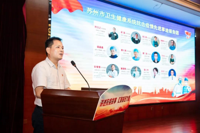 面对突如其来的新冠肺炎疫情,苏州市广大医护工作者与危急时刻挺身而出、奋勇担当;与危险战场不计得失、不畏生死;与困难境地宵衣旰食、殚精竭虑;与患者救治仁医仁心、技艺精湛,彰显了“医者仁心、大爱无疆”的医德风范、“守土有责、守土尽责”的时代担当、“患难与共、守望相助”的民族深情、“众志成城、共克时艰”的定力决心,经受住了疫情大考的考验,赢得了广大群众的充分肯定和赞誉。为赞美天使、致敬英雄、学习先进、崇尚荣誉,市卫生健康委党委决定在全系统内弘扬传承“抗疫精神”,成立了苏州市卫生健康系统抗击疫情先进事迹报告团,组织开展了巡回演讲活动。学习抗疫先锋、崇尚抗疫精神在全市卫生健康系统蔚然成风。