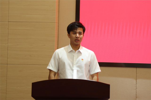 市水利工程管理处秦君同志作为新党员代表发言,他表示:中国共产党走过了102年的奋斗历程,作为世界上第一大执政党,中国共产党永葆先进,永远年轻。习近平总书记提出“青年兴则国家兴,青年强则国家强”,水务青年要立志把青春奋斗融入党和人民事业。作为一名新党员,将紧紧围绕四篇水文章、努力提升“五大能力”,尽全力做到“一事一技,常做常新”,在保障“西塘河”和“七浦塘”两条清水通道的水安全、水生态方面狠下功夫,为水利工程管理工作再上新台阶贡献力量。