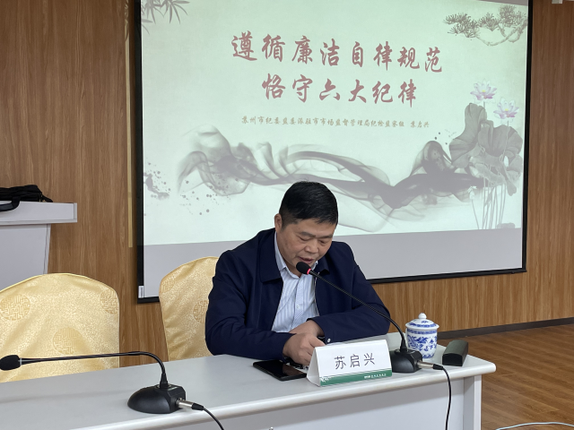 为进一步强化局机关党员干部拒腐防变意识,不断筑牢思想道德防线,提升履职尽责能力,强化政治纪律观念,加强工作作风建设,10月28日,苏州市商务局特邀请苏州市纪委监委派驻市市场监督管理局纪检监察组苏启兴组长为局全体工作人员上了一堂“遵循廉洁自律规范,恪守六大纪律”的党风廉政教育课,并观看了《拍蝇》反腐倡廉警示教育片。